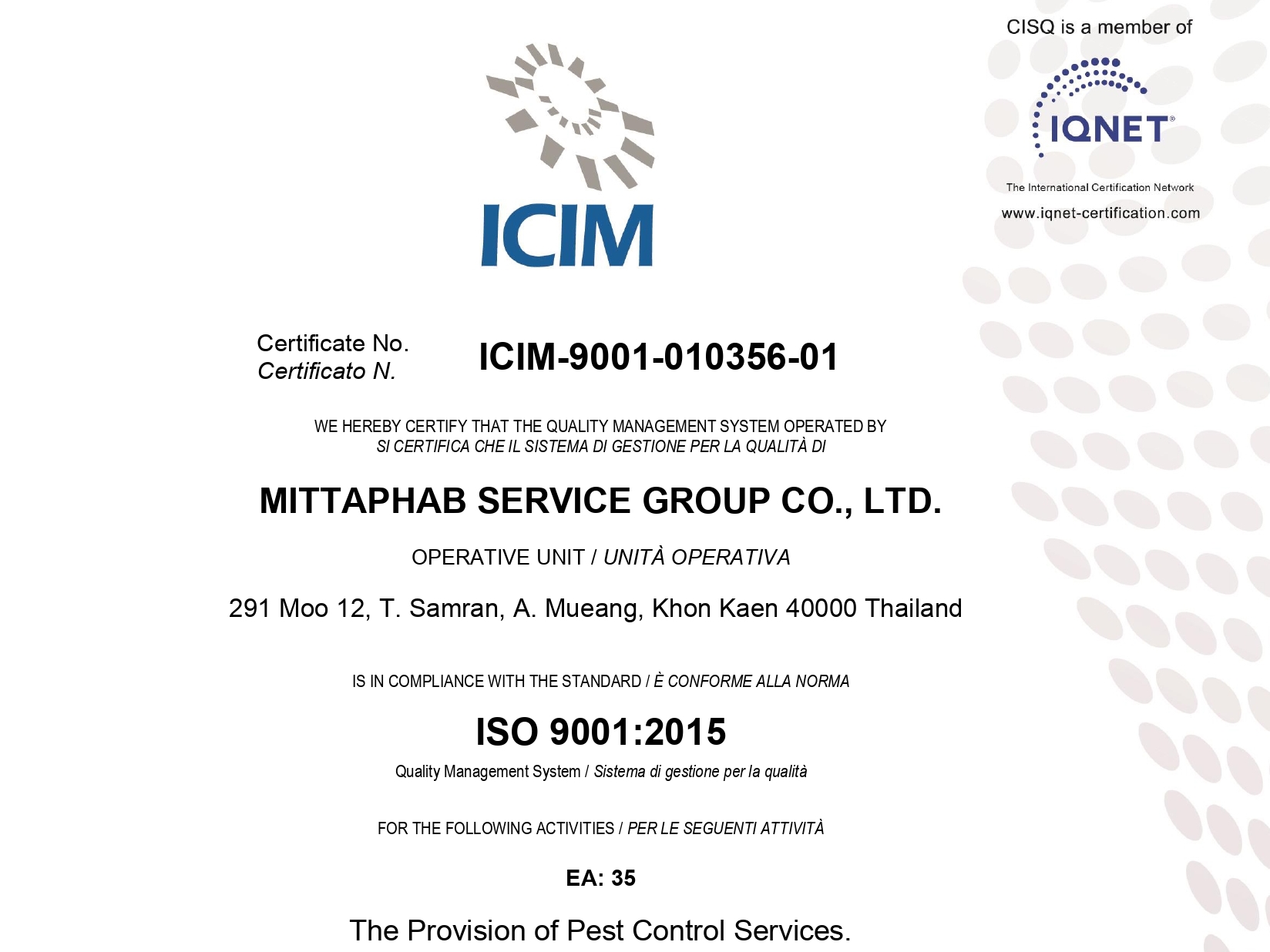 เราคือผู้เชี่ยวซาญในด้านการกำจัดปลวก กำจัดแมลง อันดับ 1 ได้รับรองมาตรฐาน ISO 9001 :2015