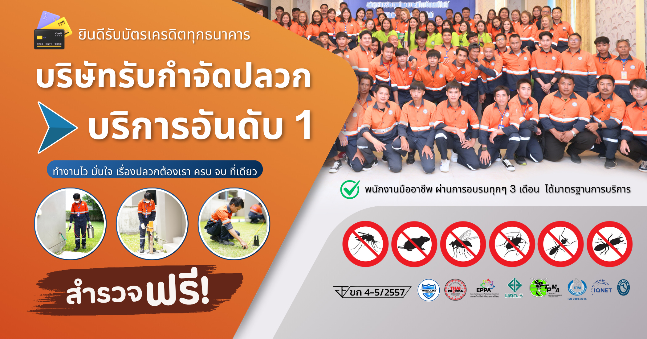 ที่มีการบริการลูกค้าอันดับ 1 ของประเทศ ให้บริการด้านการป้องกันและกำจัด ปลวก มด หนู แมลงสาบ แมลงคืบคลาน และสัตว์พาหะนำโรคทุกชนิด เราพร้อมให้บริการทั่วประเทศไทย ด้วยนโยบายของบริษัทฯ ที่เน้นการให้บริการลูกค้าอย่างมีประสิทธิภาพ ด้วยความซื่อสัตย์ เราได้ใช้สารเคมีที่ได้มาตราฐาน ปลอดภัย ต่อมนุษย์และสิ่งแวดล้อม ภายใต้แนวคิด “บริการดี แก้ปัญหาได้ เรียกใช้ง่าย เน้นคุณภาพ” ซึ่งทุกขั้นตอนการทำงาน จะถูกควบคุมโดยทีมงาน และผู้บริหาร ประสบการณ์มากกว่า 20+ ปี จึงทำให้เป็นบริษัทกำจัดแมลงชั้นนำของประเทศ