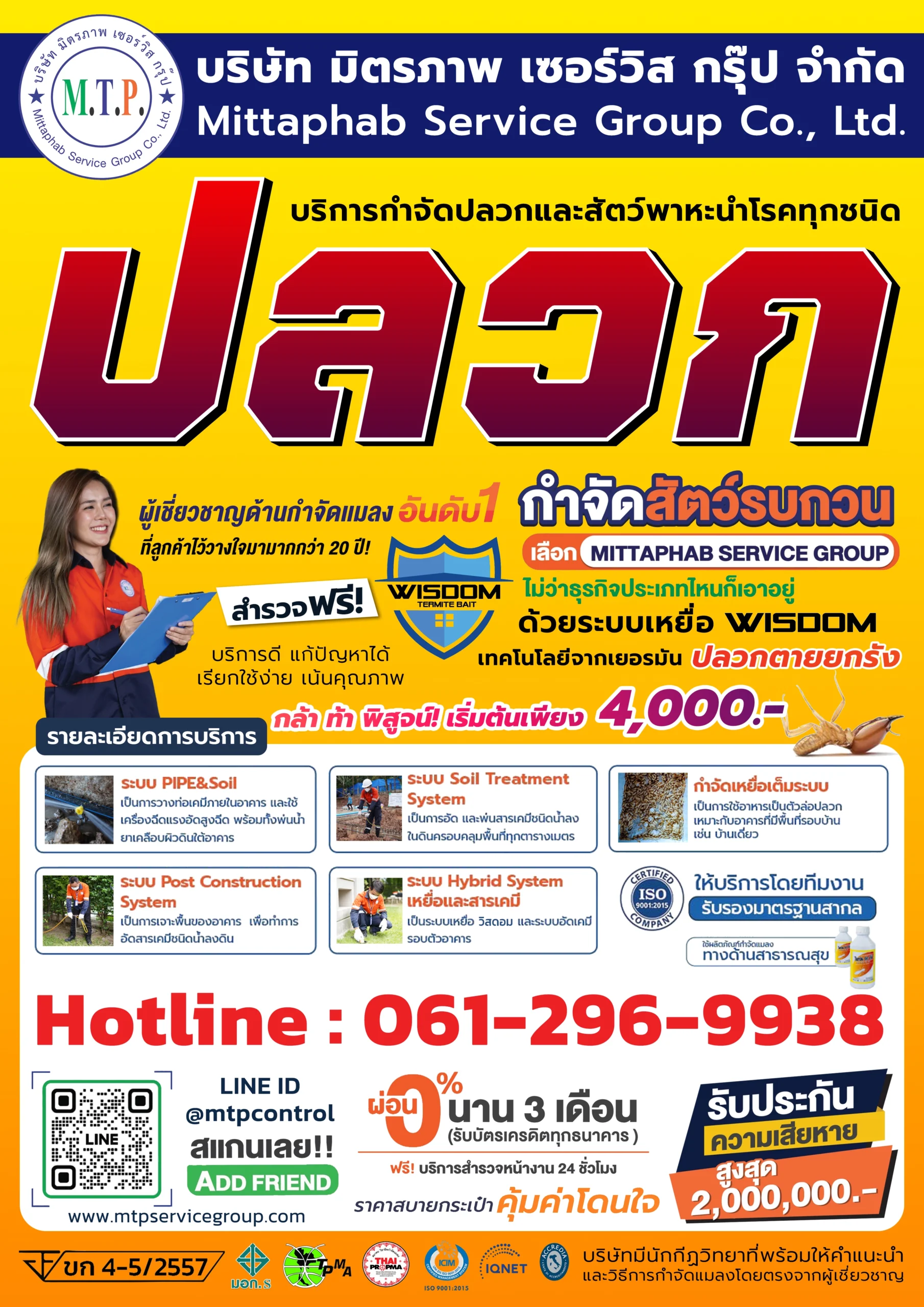 สนใจใช้บริการกำจัดปลวก กำจัดแมลง และสัตว์รบกวนกับ MITTAPHAB SERVICE GROUP