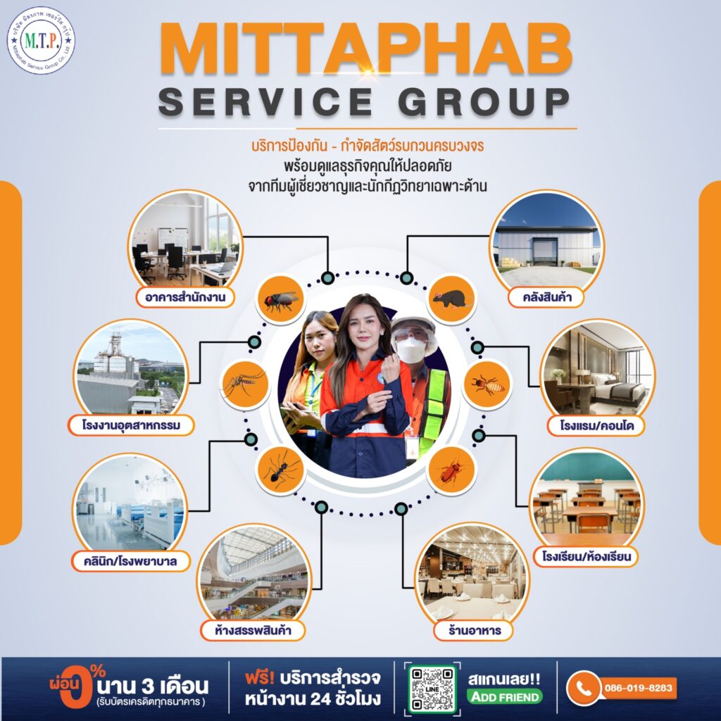 ให้บริการกำจัดแมลง ที่มีบริการลูกค้า อันดับ 1 ของประเทศ ให้บริการด้านการป้องกันและกำจัด ปลวก มด หนู แมลงสาบ แมลงคืบคลาน และสัตว์พาหะนำโรคทุกชนิด เราพร้อมให้บริการทั่วประเทศไทย ด้วยนโยบายของบริษัทฯ ที่เน้นการให้บริการลูกค้าอย่างมีประสิทธิภาพ ด้วยความซื่อสัตย์ เราได้ใช้สารเคมีที่ได้มาตราฐาน ปลอดภัย ต่อมนุษย์และสิ่งแวดล้อม ภายใต้แนวคิด “บริการดี แก้ปัญหาได้ เรียกใช้ง่าย เน้นคุณภาพ” ซึ่งทุกขั้นตอนการทำงาน จะถูกควบคุมโดยทีมงาน และผู้บริหาร ประสบการณ์กว่า 20 ปี จึงทำให้เป็นบริษัทกำจัดแมลงชั้นนำของประเทศ